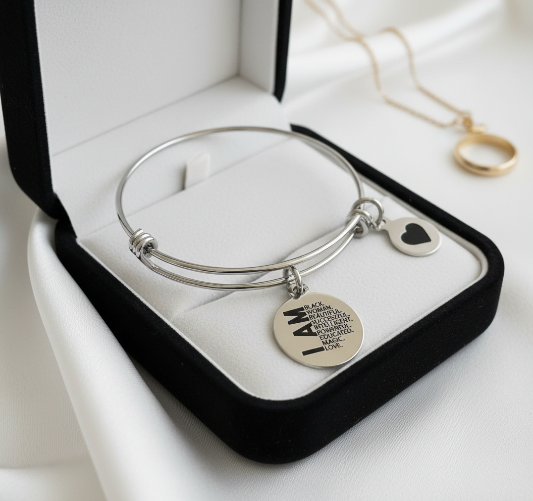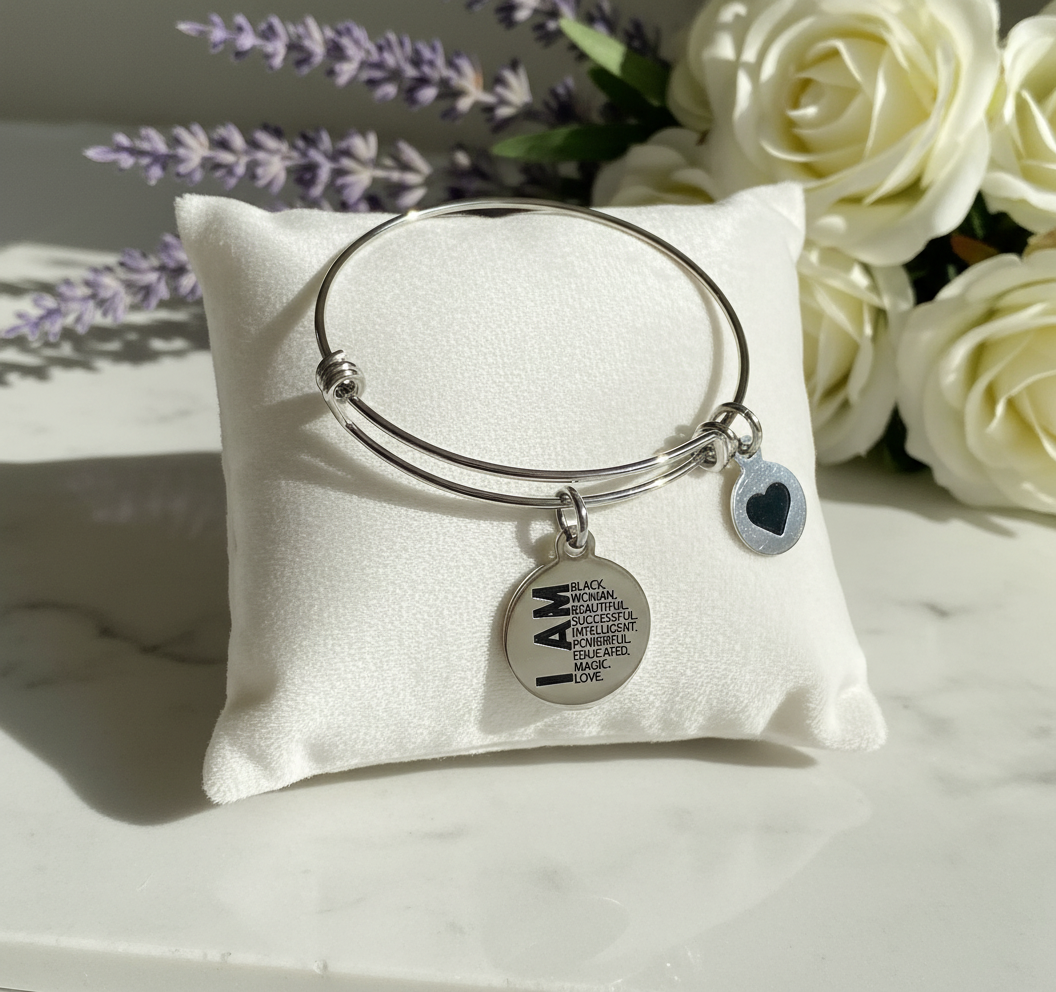 2.4 inch stainless steel adjustable Bracelet. Charm measurements: 3/4" x 7/8" (or 19mm x 22mm). The charms and bracelets are made from high-quality stainless steel. Stainless Steel is hypoallergenic, does not tarnish and is lead and nickel free. The charms are mirror polished on both sides. These charms will be laser engraved with a personal phrase. Best gift for birthday, friendship gift, etc. Suitable for a variety of occasions like party, celebration and others. Comfortable to wear with any outfit.